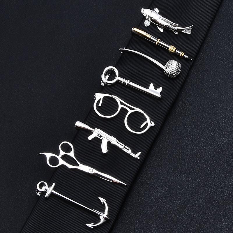 1 Piece Feather Glasses Anchor Mustache Key Shape Silver Metal Tie Clip for Men