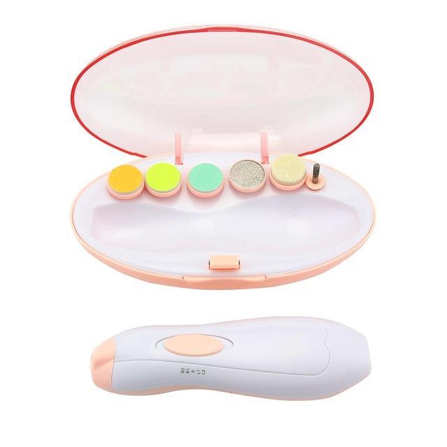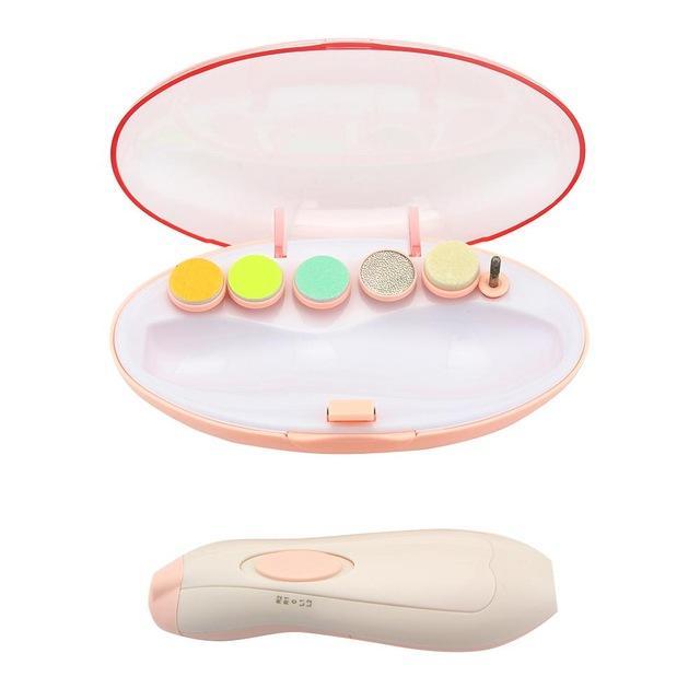 Baby Trim is a battery operated nail trimmer that safely files tiny fingernails without harming surrounding skin. A gentle, yet effective oscillating action trims your baby's nails and includes two power settings. BabyTrim comes with four cushioned pads, each designed for a different stage of your baby's growth.