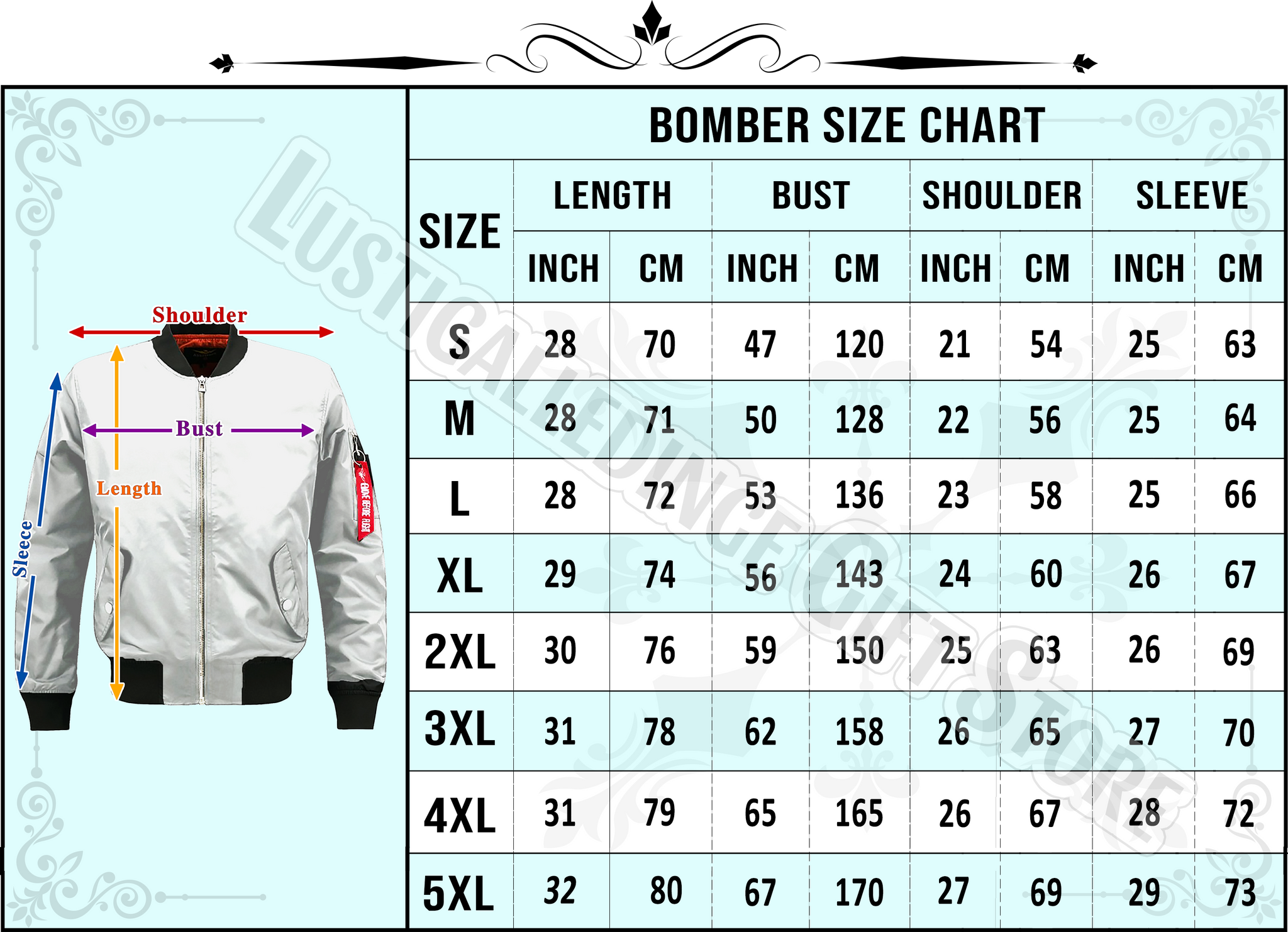 BOMBER JACKETS SIZE CHART: