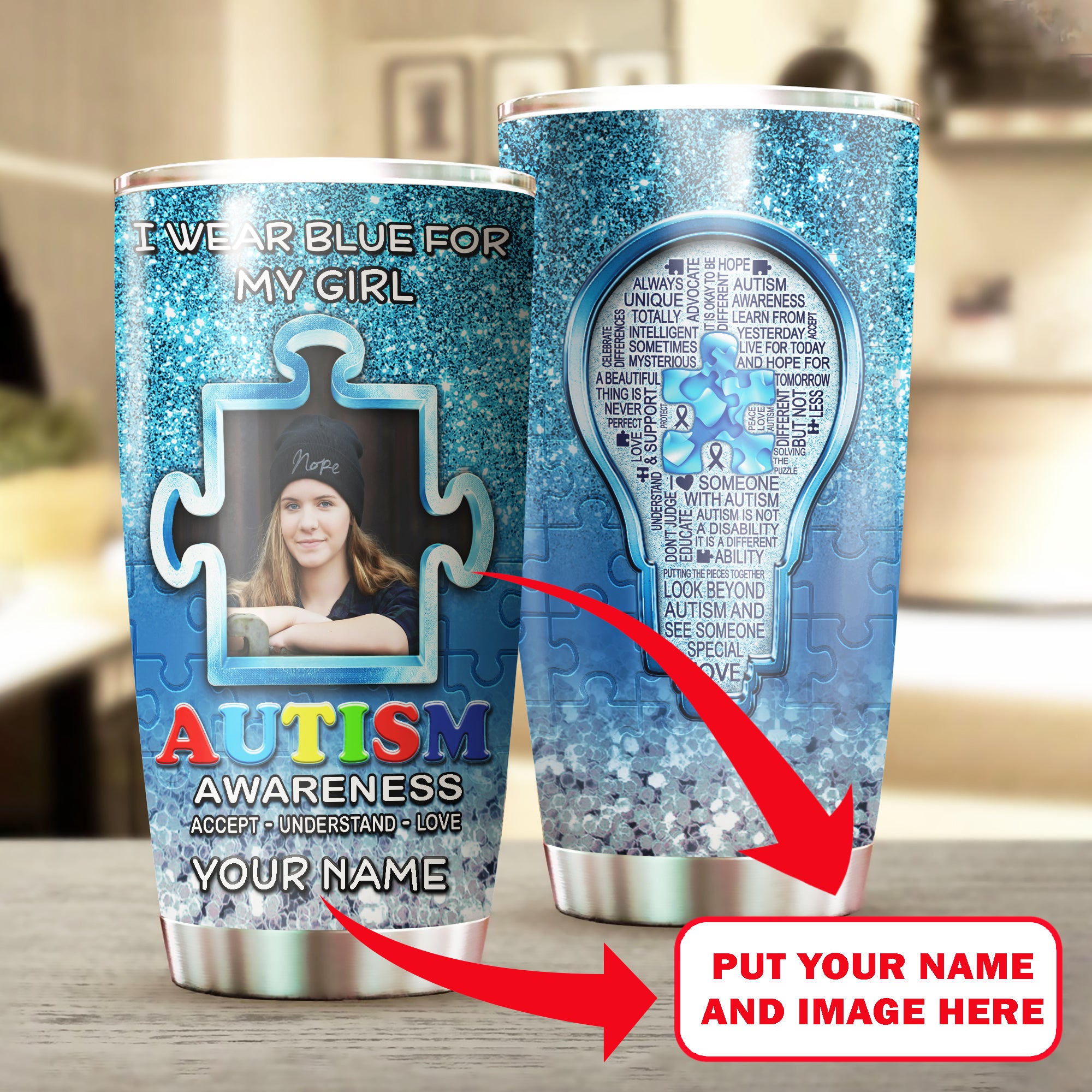 Autism Mug Customize Your Girl Photo  I Wear Blue For My Girl Mug Stainless Steel Tumbler 20 Oz Gift For Autism Awareness