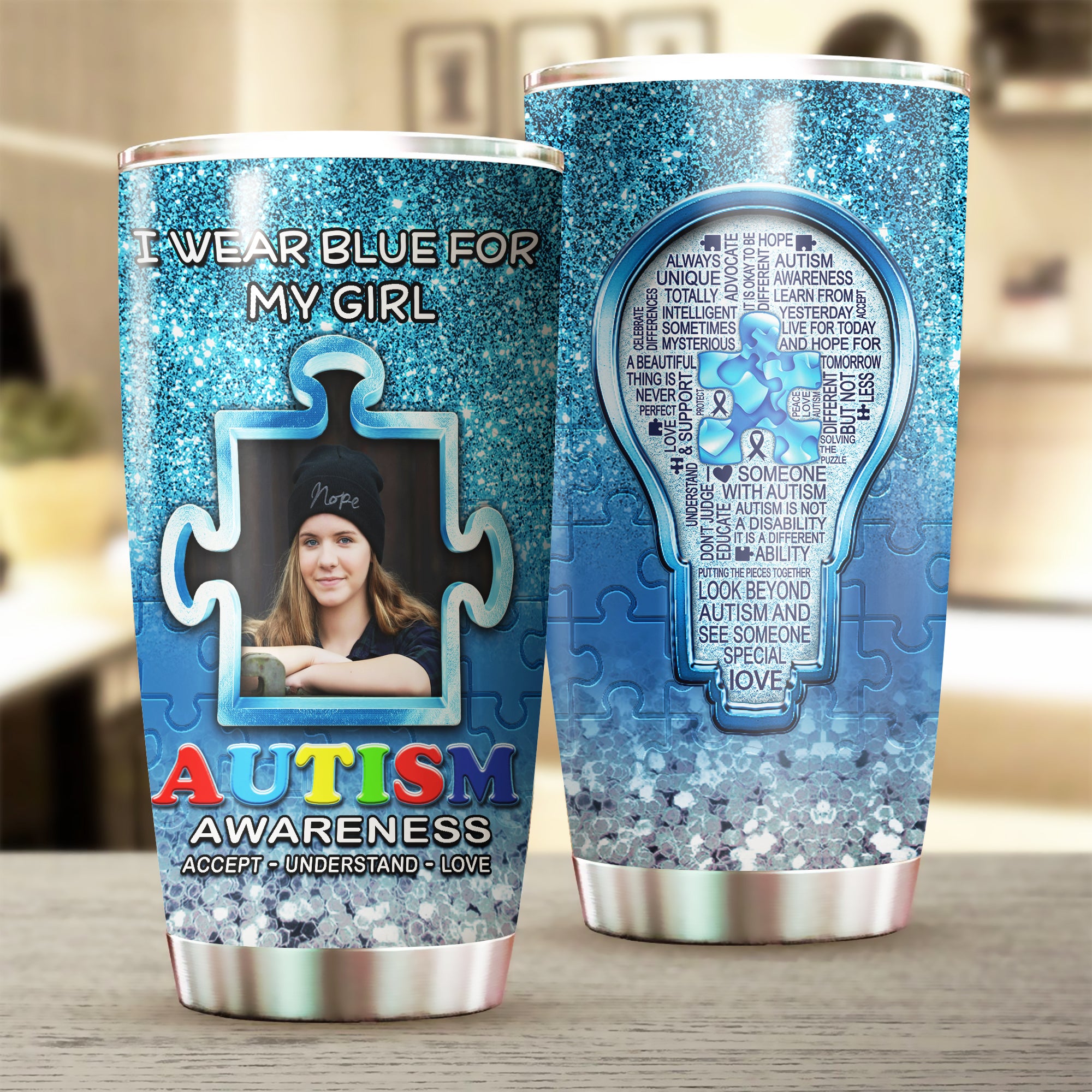 Autism Mug Customize Your Girl Photo I Wear Blue For My Girl Mug Stainless Steel Tumbler 20 Oz Gift For Autism Awareness