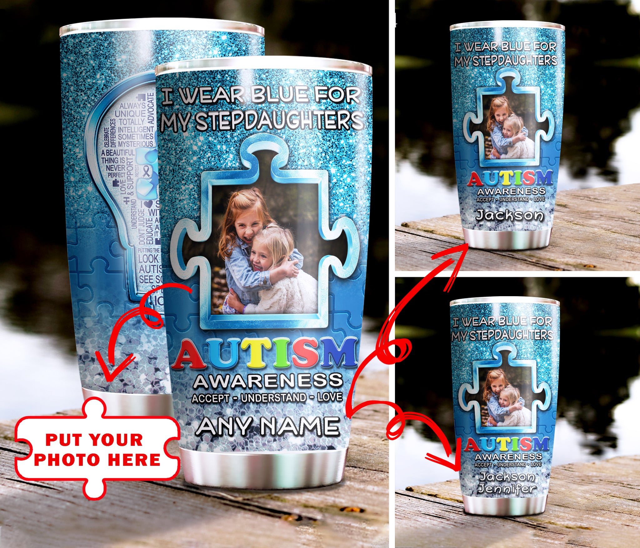 Autism Mug Customize Your Stepdaughters Photo I Wear Blue For My Stepdaughters Mug Stainless Steel Tumbler 20 Oz Gift For Autism Awareness