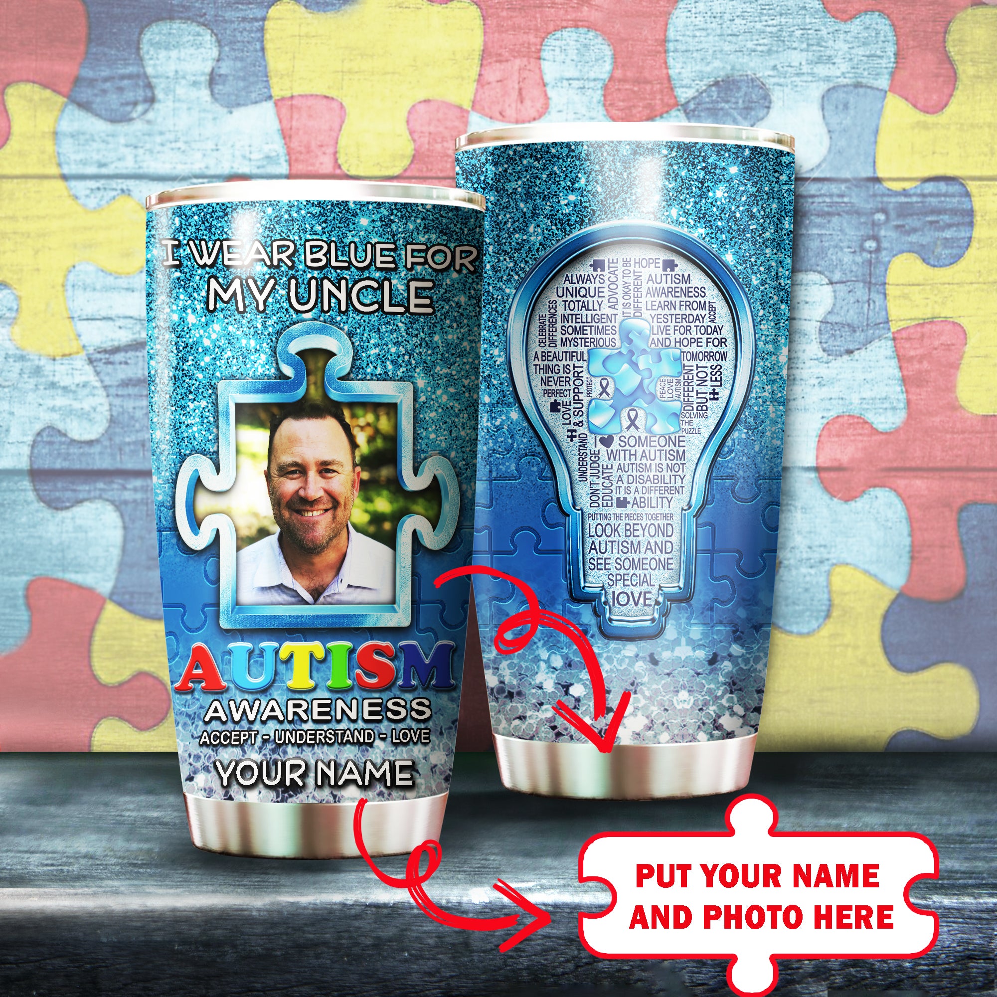 Autism Mug Customize Your Uncle Photo  I Wear Blue For My Uncle Mug Stainless Steel Tumbler 20 Oz Gift For Autism Awareness