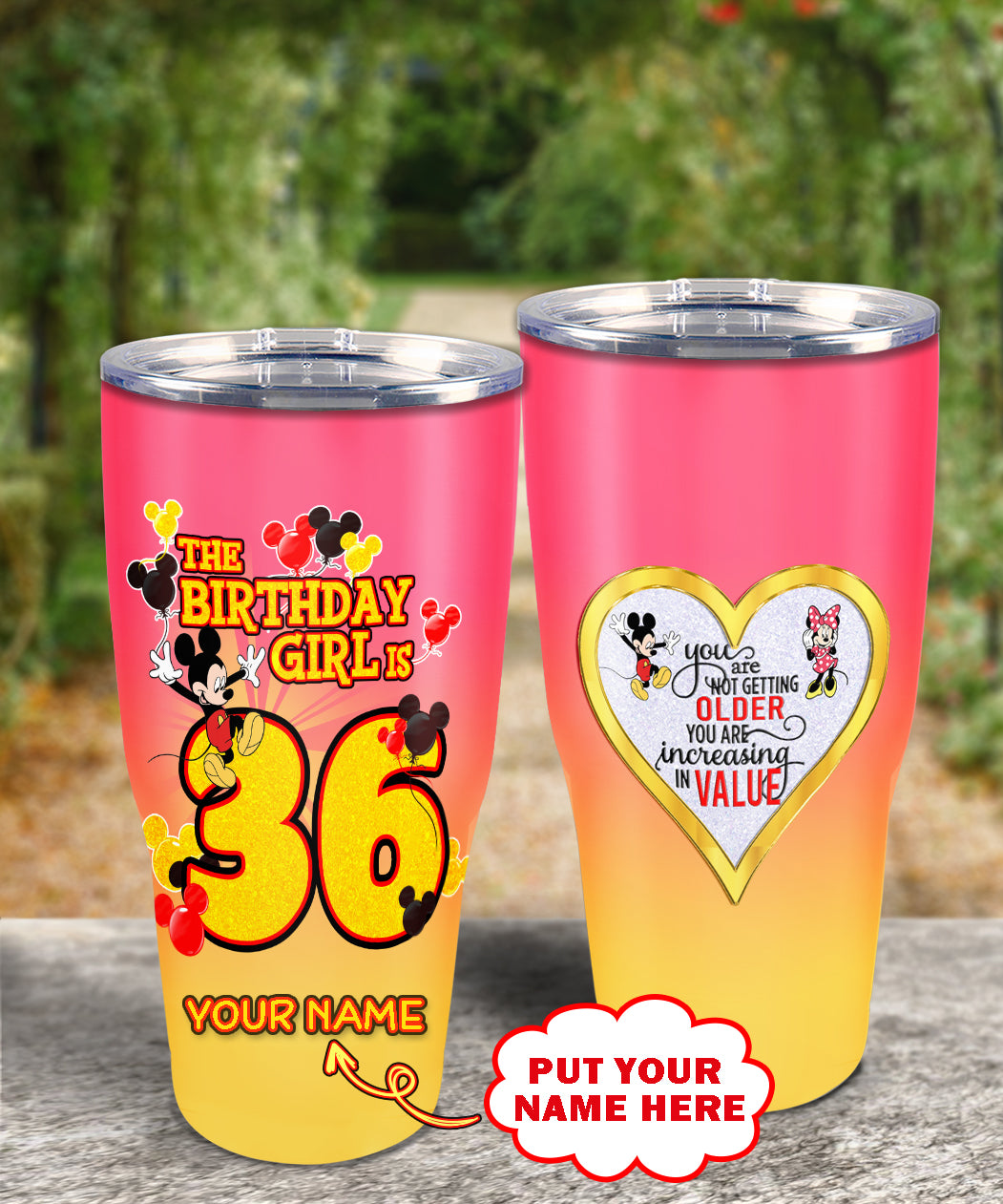 36th Birthday Steel Tumbler, 36th Birthday Wooden Pattern 30 Oz Steel Mug, CUSTOMIZED ANY NAME Mickey Birthday Steel Mug, Birthday custom mug