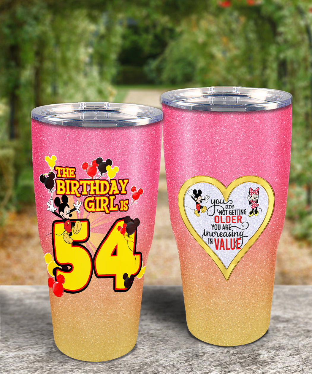 54th Birthday Steel Tumbler, 54th Birthday Wooden Pattern 30 Oz Steel Mug, PERSONALIZED ANY NAME Mickey Birthday Steel Mug, Birthday custom mug