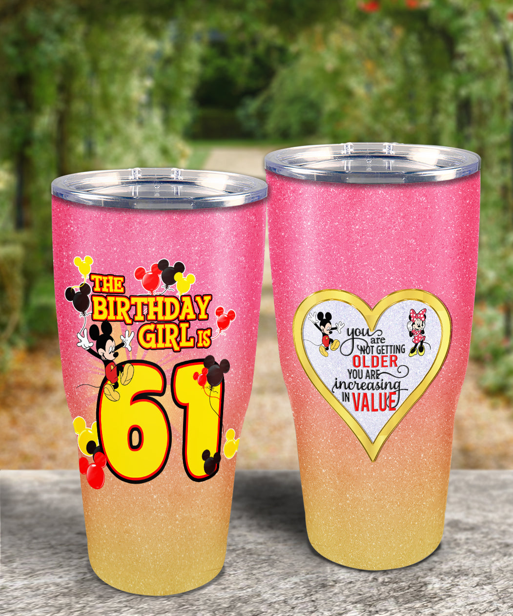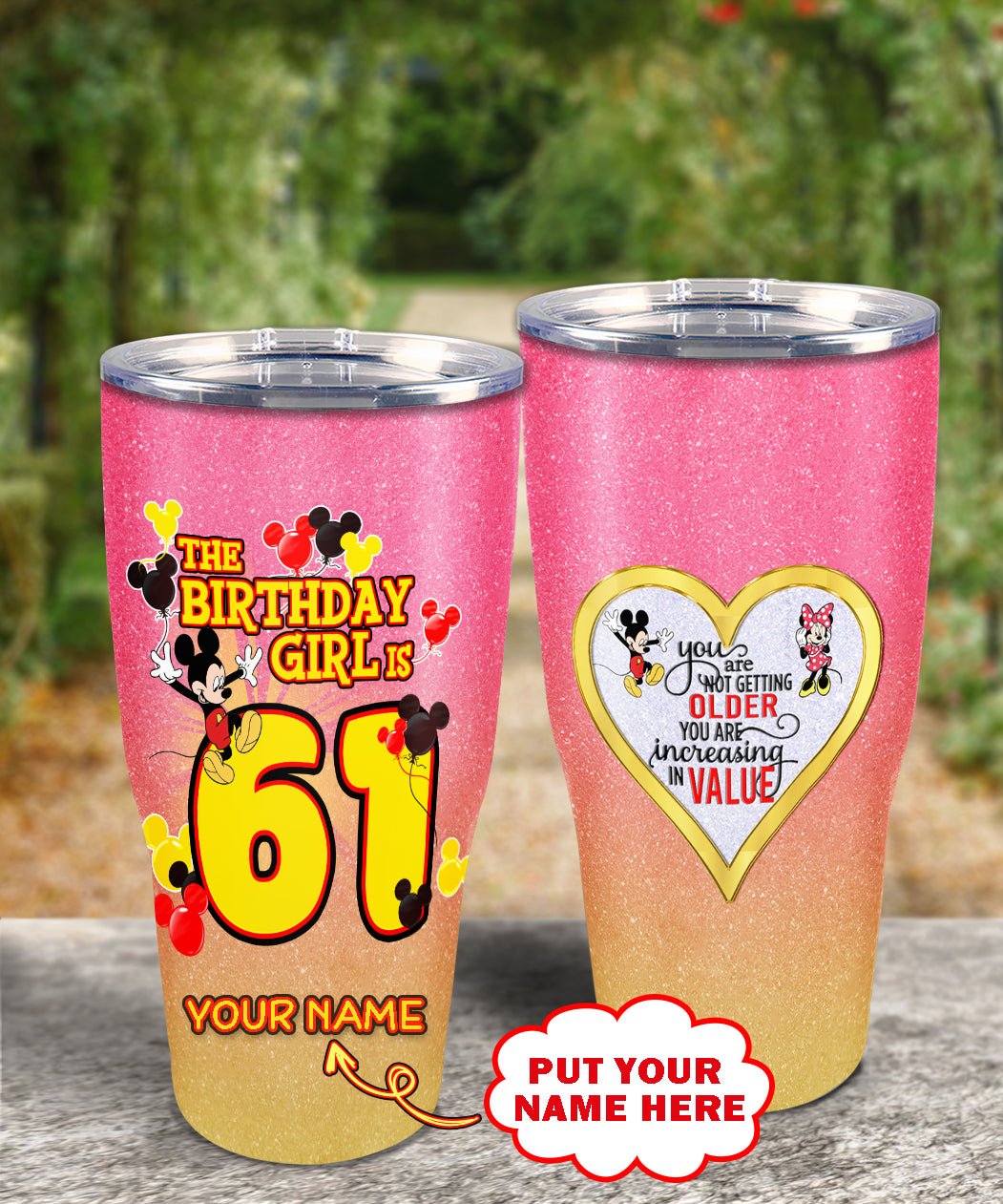 61st Birthday Steel Tumbler, 61st Birthday Wooden Pattern 30 Oz Steel Mug, CUSTOMIZED ANY NAME Mickey Birthday Steel Mug, Birthday custom mug