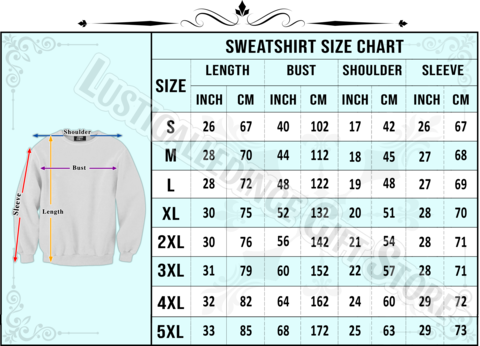 UNISEX SWEATSHIRT SIZE CHART